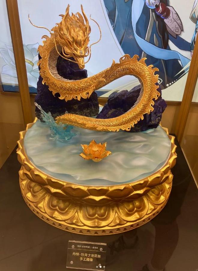 没买的拍断大腿,买的后悔买少了。说起来,前段时间Chinajoy展会上,星穹铁道展台还出现了老凤祥的联动黄金摆件,是一尊巨型的饮月之龙,周身以金丝缠绕,还有黄金莲花浮出水面,做工极为精巧,令人叹为观止,可惜并未开售,否则买来绝对有极大的升值空间。