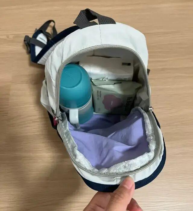 ,小孩饮料洒在上面擦一下就行,背起来不会后背闷汗,如果不想背,那就放在旅行箱拉杆上,直接拉着走!这个包在我们家已经成为