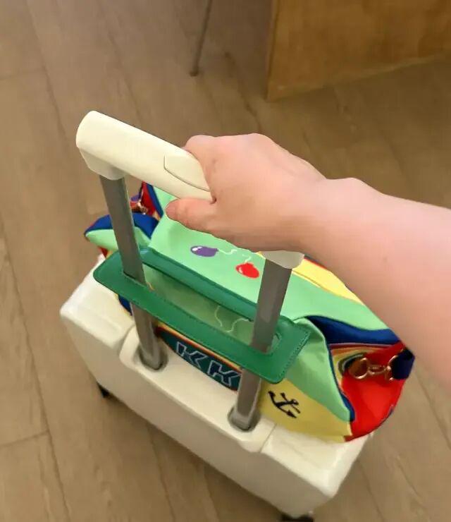 ,能装下换洗衣物、洗漱用品、水杯等完全没问题,而且能直接卡在行李箱拉杆上,解放双手超方便!