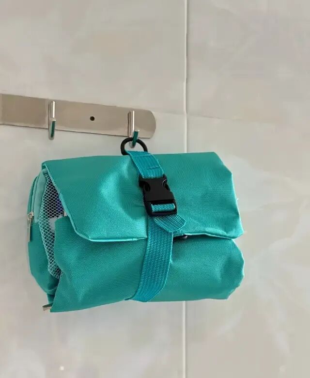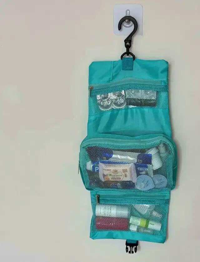 ,轻薄能折叠,用的时候一挂,不用的时候一卷,很省空间。这个洗漱包分为上中下三层,